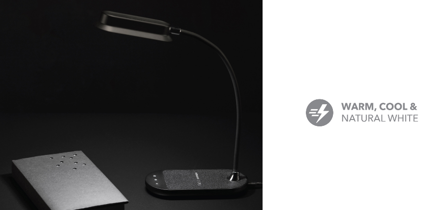 בעלת מבנה גמיש וקל משקל המאפשר שימוש נוח בלחיצת כפתור והתאמה של התאורה וזווית המנורה
